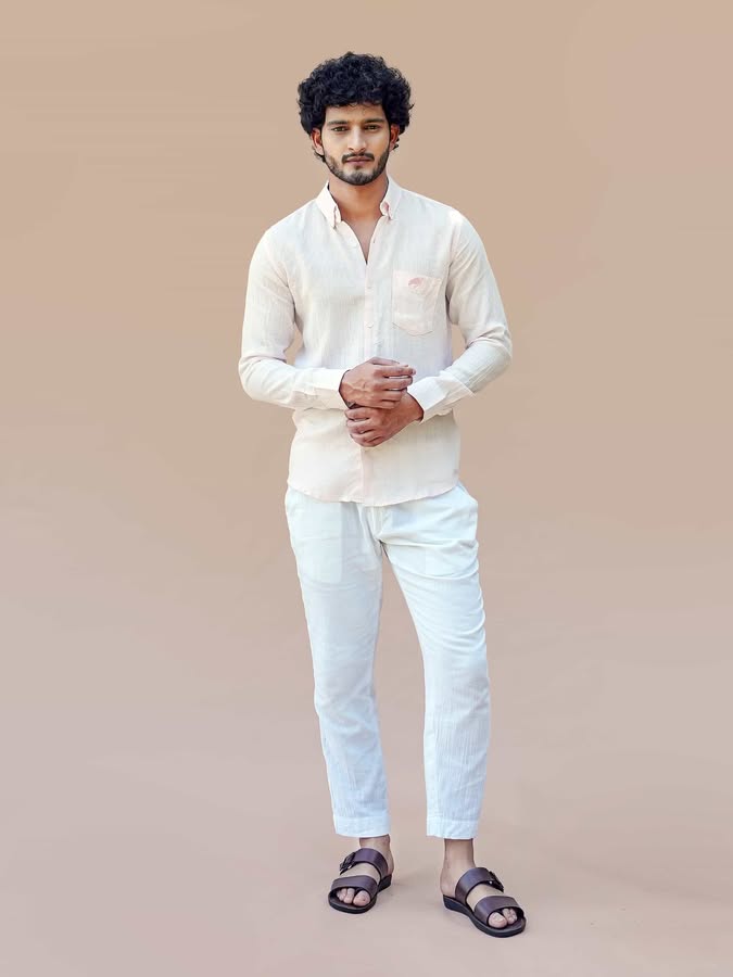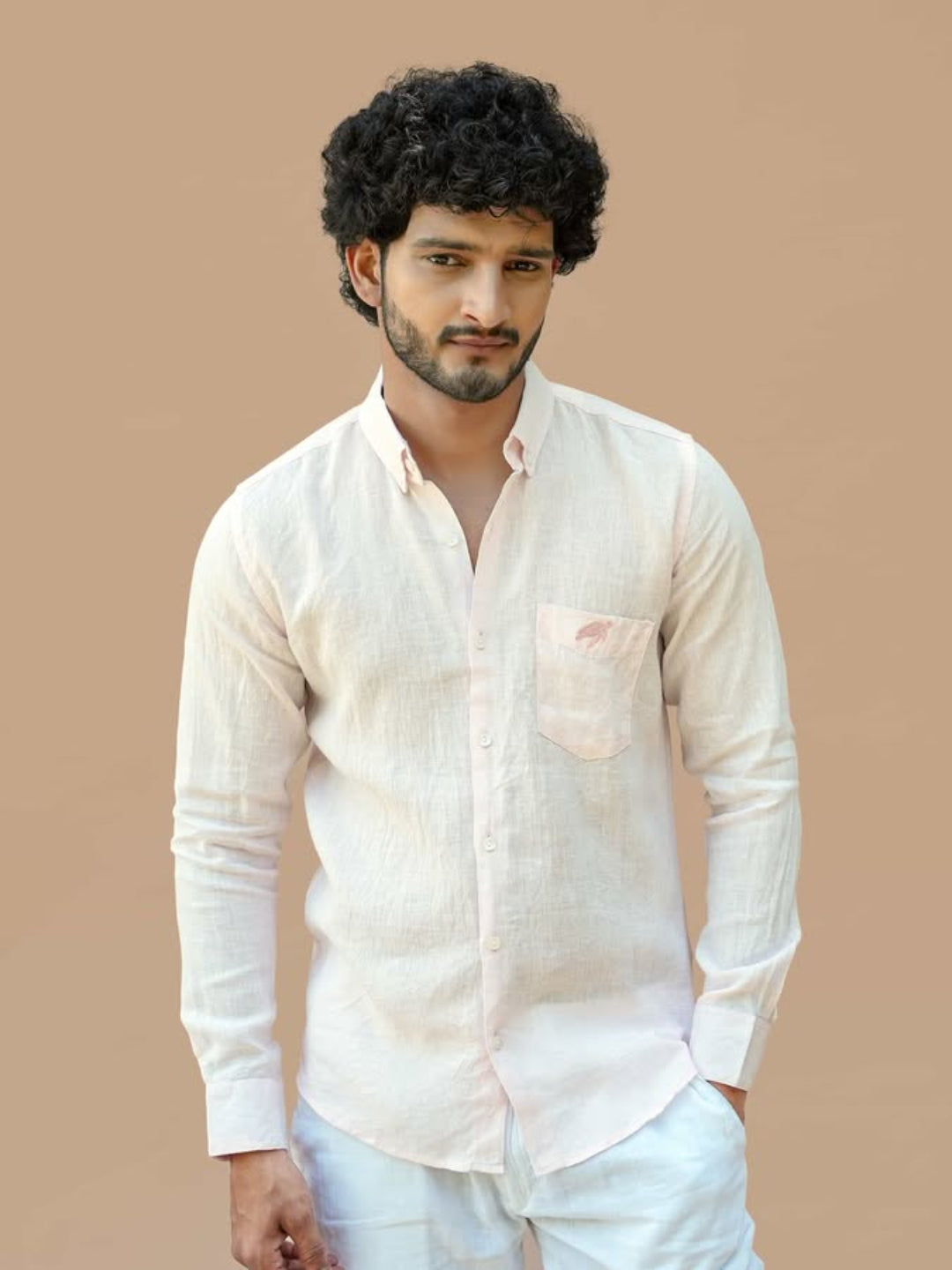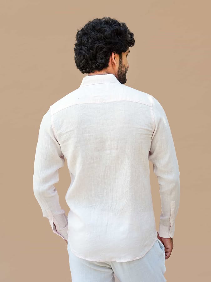 A testament to Mangrove’s refined craftsmanship - Blush Breeze, this Full Sleeves Shirt is an essential wardrobe staple. Made from 60 Lea 100% Premium Linen, known for its lightweight, breathable, and temperature-regulating properties, ensuring all-day comfort. Designed with a tailored yet effortless straight cut, perfect for any occasion. The subtle embroidered KURMA emblem on the chest pocket adds a touch of understated sophistication.