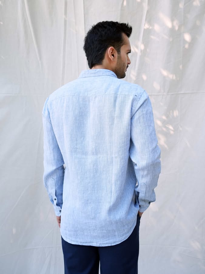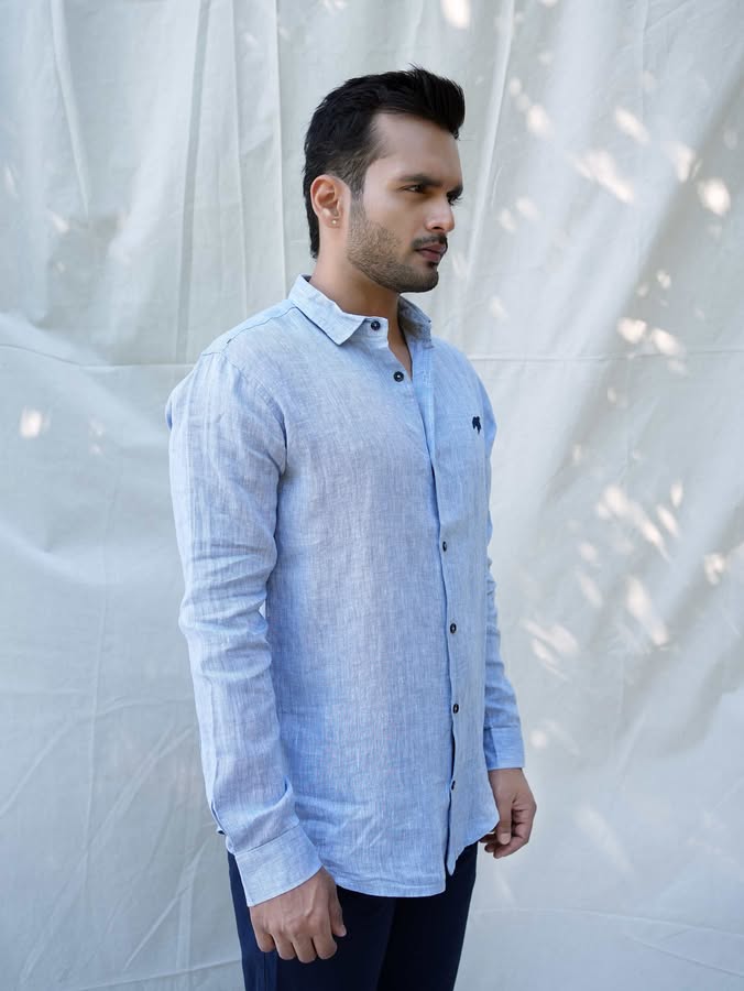 Embrace the raw, earthy beauty of our Chambray Linen Shirt, designed for those who appreciate both style and sustainability. Crafted from 60 Lea Premium Linen, this shirt offers a perfect balance of comfort, breathability, and effortless sophistication.