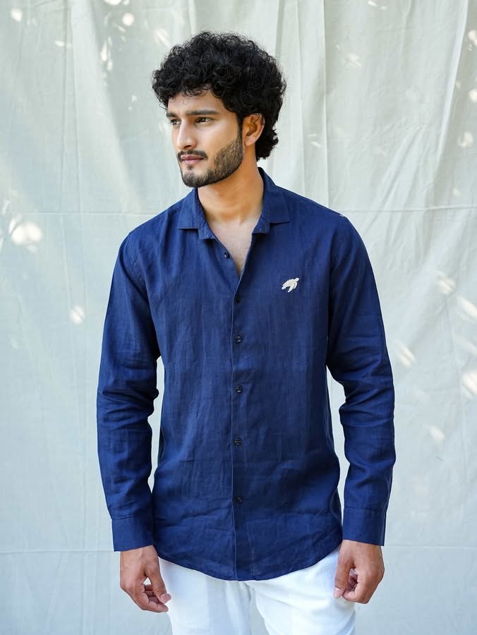 Embrace the raw, earthy beauty of our Deep Blue Linen Shirt, designed for those who appreciate both style and sustainability. Crafted from 60 Lea Premium Linen, this shirt offers a perfect balance of comfort, breathability, and effortless sophistication.