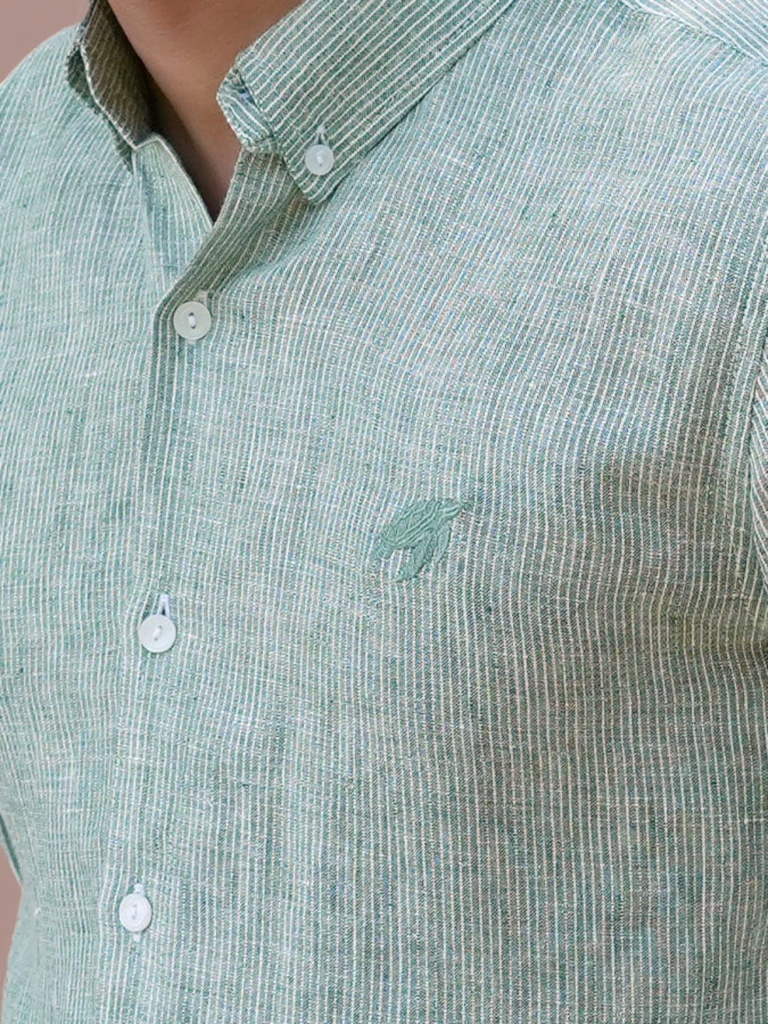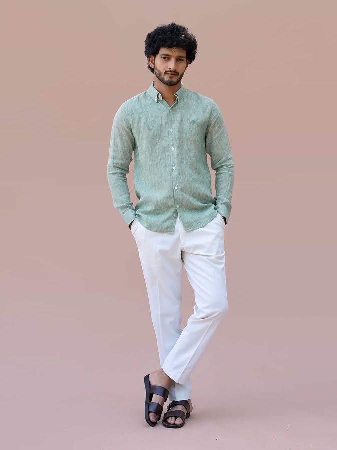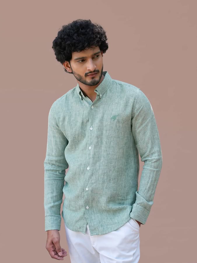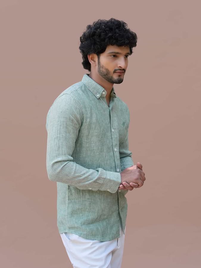 A testament to Mangrove’s refined craftsmanship - Earthbound Stripes, this Moss Viel Shirt is an essential wardrobe staple. Made from 60 Lea 100% Premium Linen, known for its lightweight, breathable, and temperature-regulating properties, ensuring all-day comfort. Designed with a tailored yet effortless straight cut, perfect for any occasion. The darker green embroidered KURMA emblem on the chest adds a touch of subtle sophistication.
