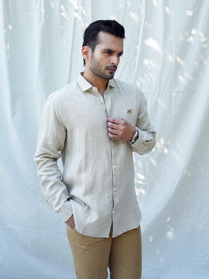 Embrace the raw, earthy beauty of our Linen Regular Fit Natural Taupe Shirt, designed for those who appreciate both style and sustainability. Crafted from 60 Lea Premium Linen, this shirt offers a perfect balance of comfort, breathability, and effortless sophistication.