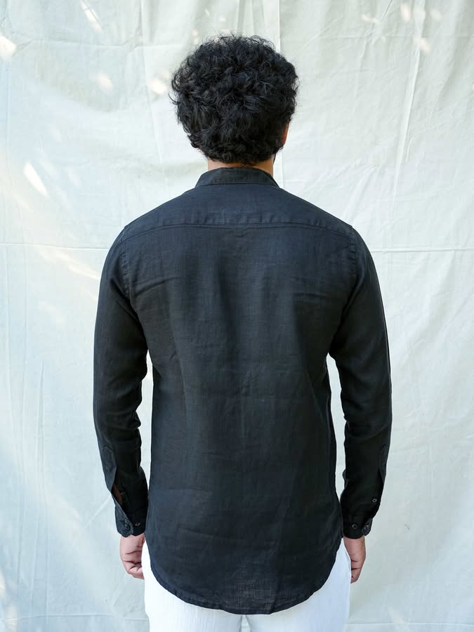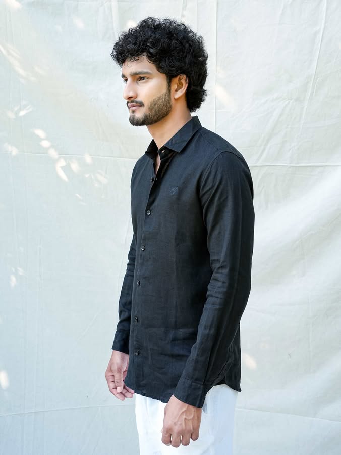 Embrace the raw, earthy beauty of our Onyx Black Linen Shirt, designed for those who appreciate both style and sustainability. Crafted from 60 Lea Premium Linen, this shirt offers a perfect balance of comfort, breathability, and effortless sophistication.