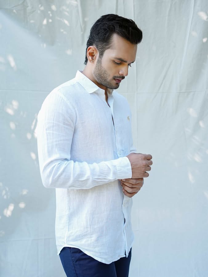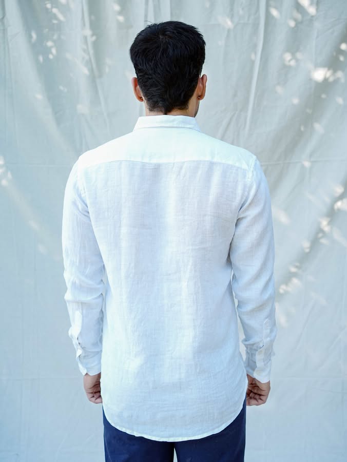 Embrace the raw, earthy beauty of our Pearl White Linen Shirt, designed for those who appreciate both style and sustainability. Crafted from 60 Lea Premium Linen, this shirt offers a perfect balance of comfort, breathability, and effortless sophistication.
