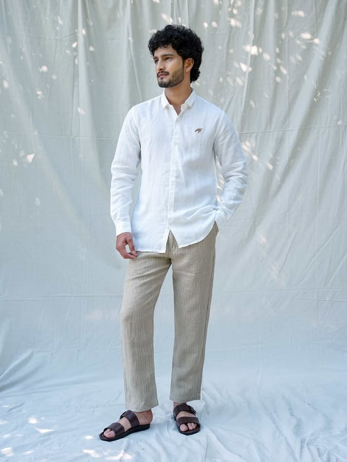 Embrace the raw, earthy beauty of our Seashell Linen Shirt, designed for those who appreciate both style and sustainability. Crafted from 60 Lea Premium Linen, this shirt offers a perfect balance of comfort, breathability, and effortless sophistication.