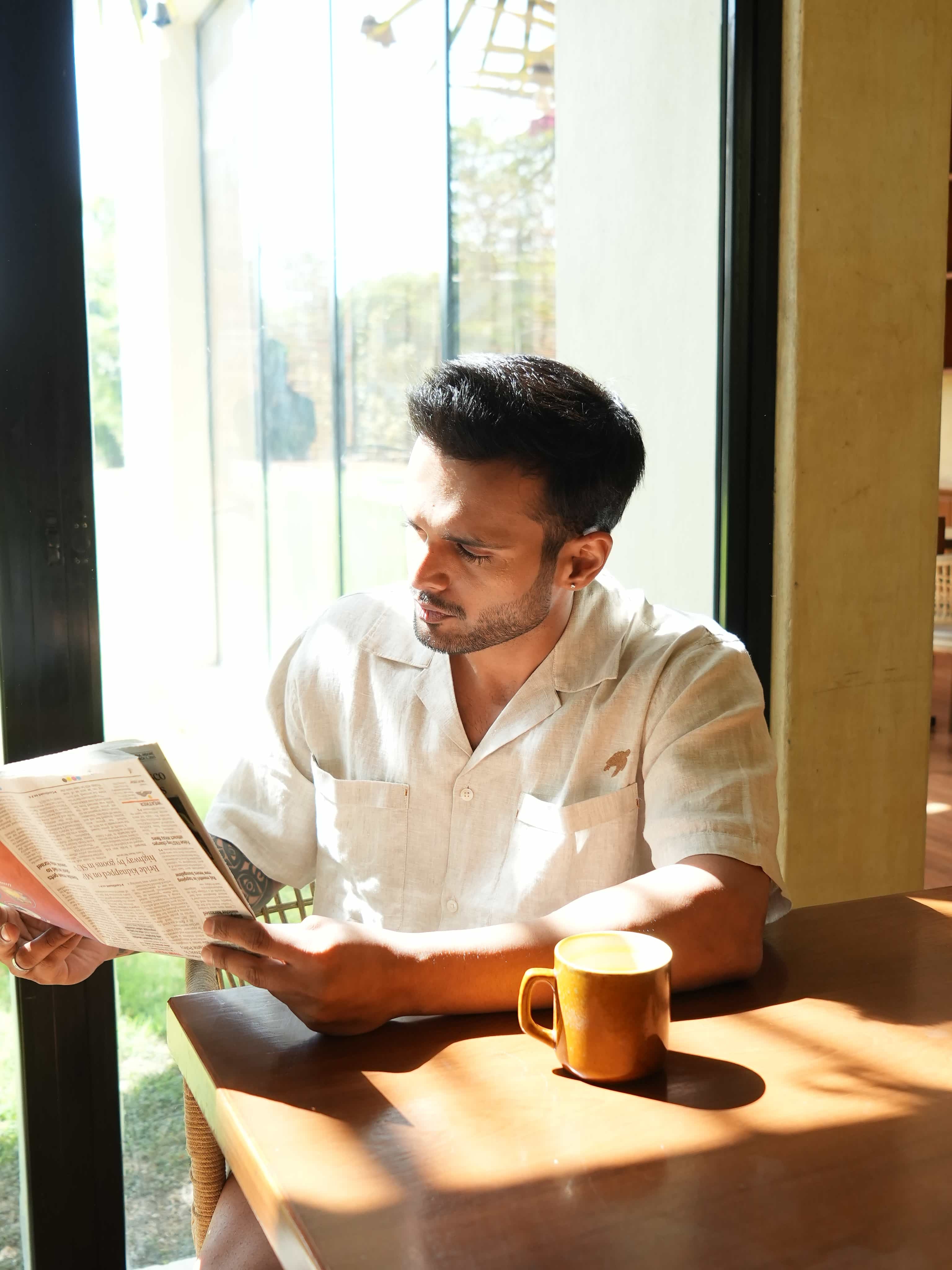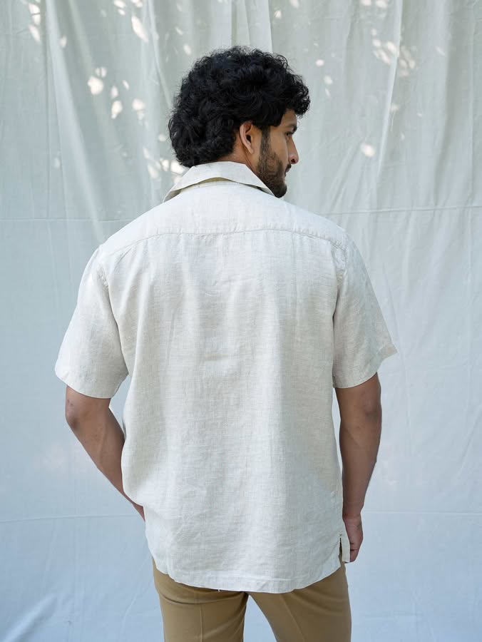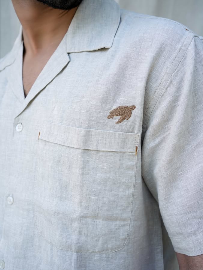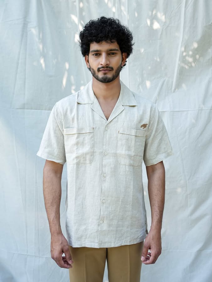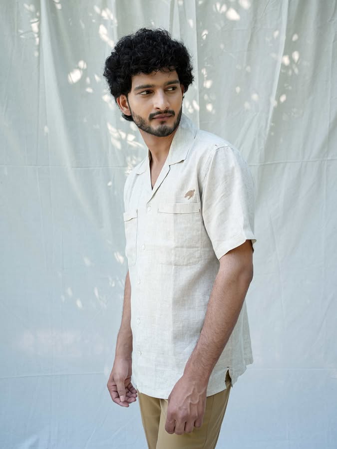 A testament to Mangrove’s Refined Craftsmanship, This Soft Amber Cuban Collar Shirt is a perfect blend of Effortless Style and Everyday Comfort. Made from 60 Lea Premium Linen, it offers Breathability, Softness, and Temperature regulation, making it ideal for warm-weather dressing. The Relaxed Half-Sleeves and Open Cuban Collar add a touch of laid-back Sophistication. The Contrast Tan Embroidered KURMA emblem on the chest completes the look with subtle elegance.