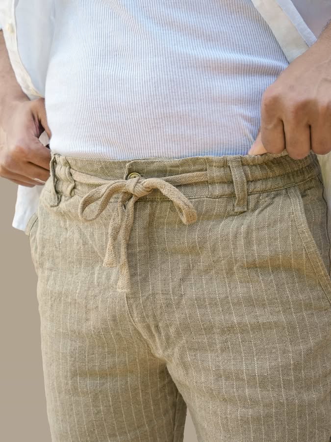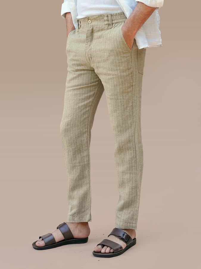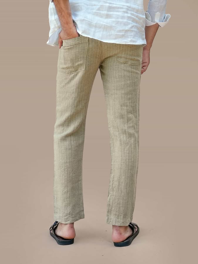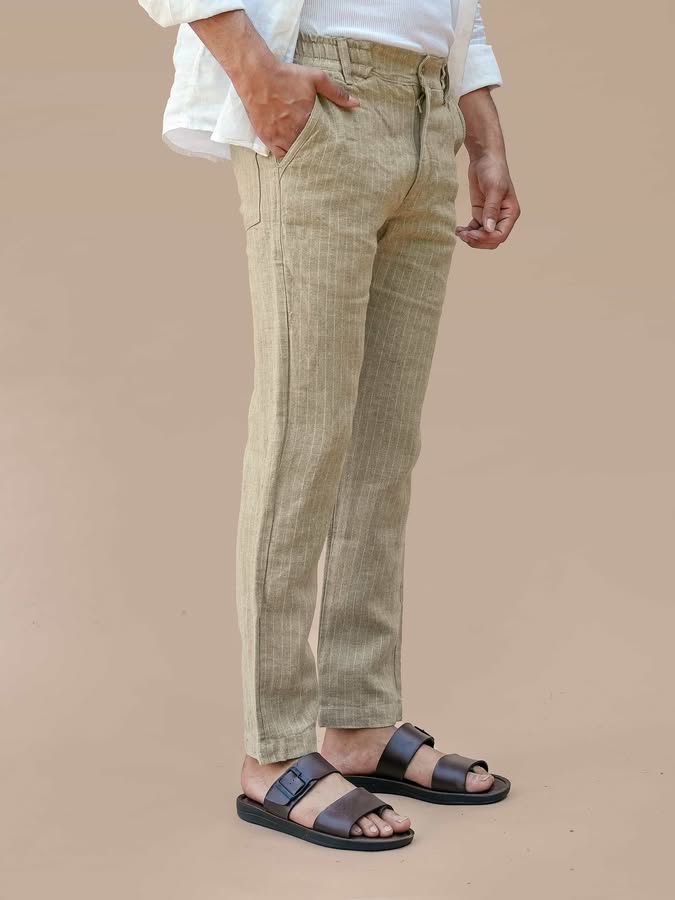 Designed for men who appreciate understated patterns with timeless appeal, the Linen Straight Fit Almond Stripe Pant is a perfect addition to your collection.