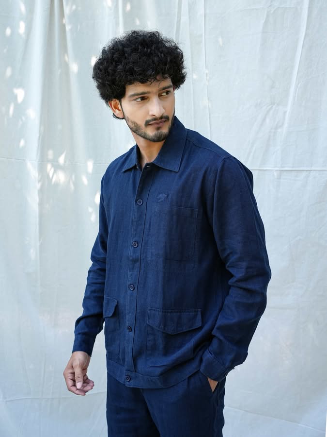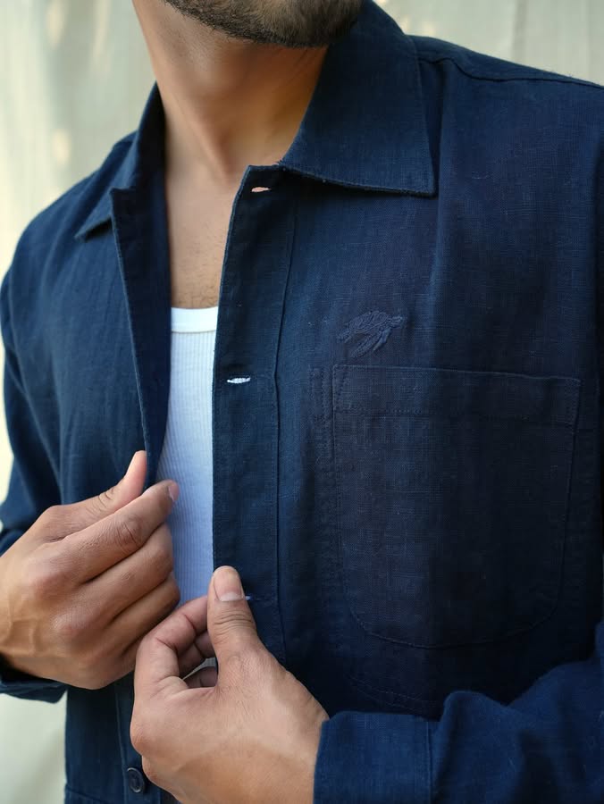Navy Blue Linen Shacket – Classic Depth, Everyday Ease